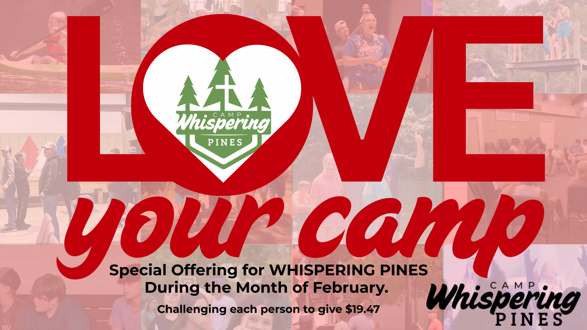 LOVE YOUR CAMP is a month-long offering opportunity taking place during the month of February. We are simply asking each church to promote this special offering, to your church members, asking them to give $19.47 to support the camp. 1947 is when the camp began and we are challenging each person to give this simple amount. A gift of $20 per person will help make a significant impact for the camp!